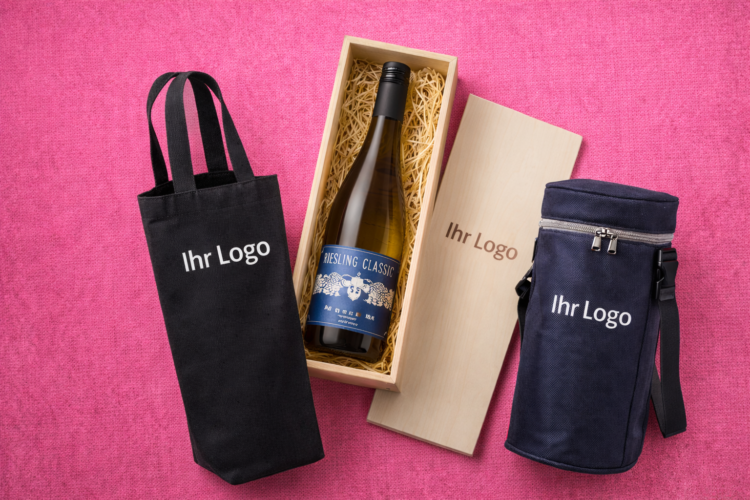 Und weil wir aus der Werbung kommen, legen wir auch Wert auf das Drumherum: Passend zu unseren Weinen bieten wir auch hochwertige Verpackungslösungen an – von bedruckten Beuteln bis hin zu individuell gravierten Holzkisten.