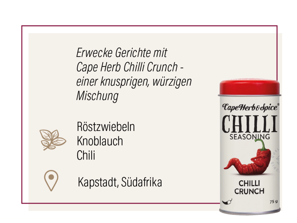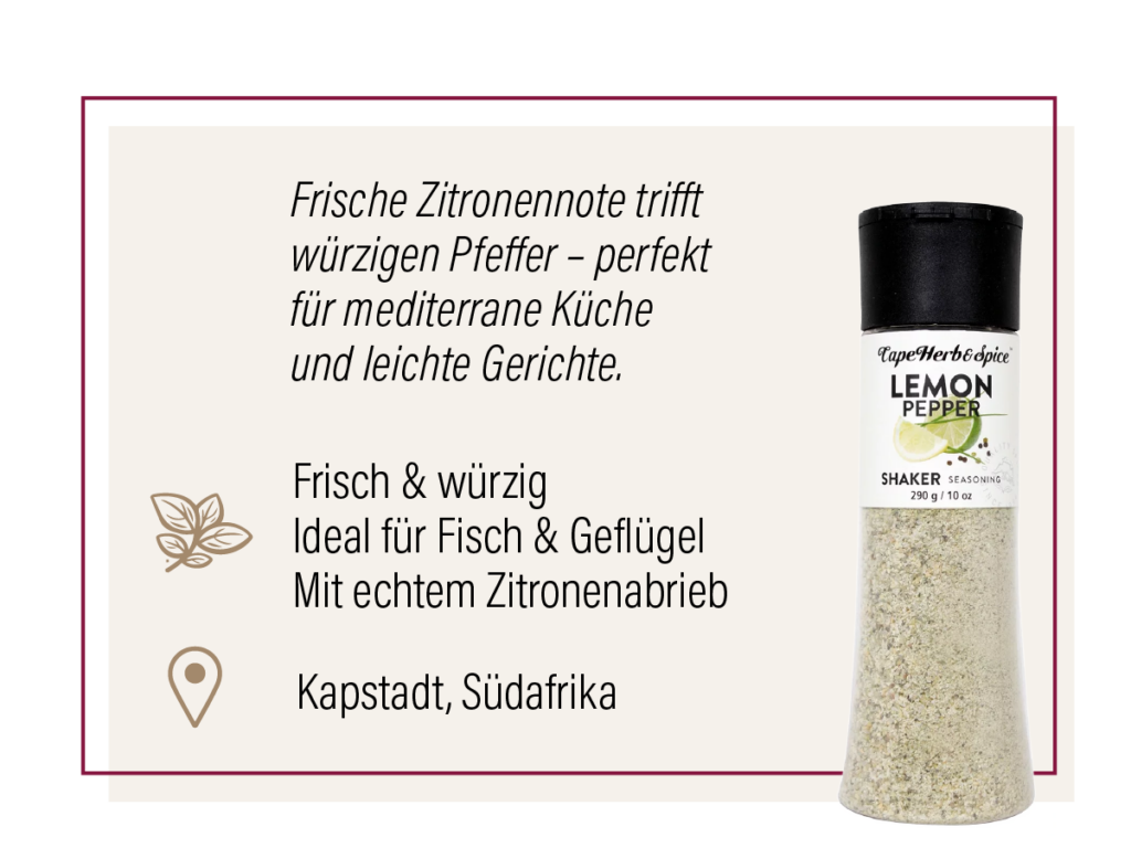 Ein echter Klassiker aus der südafrikanischen Grilltradition: Statt „Grillen“ spricht man dort vom „Braai“. Diese aromatische Gewürzmischung verleiht Fleisch und anderen Grillgerichten eine intensive, angenehm rauchige Note. Der enthaltene braune Zucker sorgt beim Garen für eine feine Karamellisierung und eine besonders geschmackvolle Kruste.
